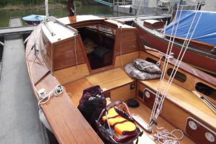 Ein GFK Boot - das allerdings sofort ein Teak-Stabdeck im Plichtboden bekommt. Ganz ohne Holz gehts doch nicht...