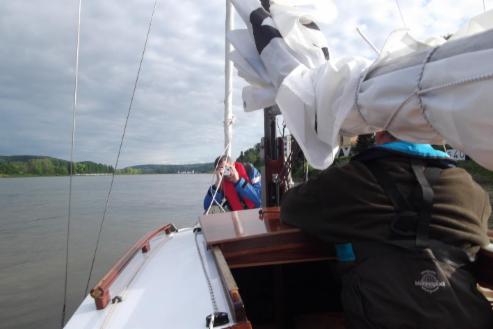 Sie wollen natürlich auch mal den Seeteufel ausprobieren - und so segeln wir bei sehr leichtem, unstetigem Wind Rheinabwärts bis Mehlem.