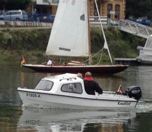Besuch von Kollegen mit 20er Jollenkreuzer - auf dem Weg zur Rheinwoche.