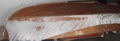 die transportfähige Bootsschale. Der Abtransport geschieht auf dem Autodach.