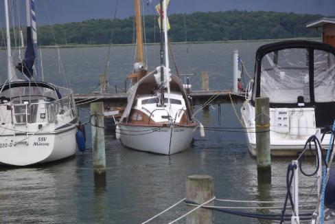 Von Ueckermünde geht es zunächst ins Achterwasser bei Usedom. Viel Wind und Sturm ist angesagt und so wettern wir im Hafen Krumin ab. Eine Städtetour ist auch schön!